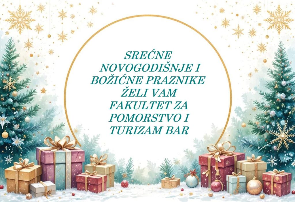 Obavještavaju se studenti, da zbog novogodišnjih i božićnih praznika Fakultet za pomorstvo i turuzam Bar neće raditi od srijede, 31. 12. 2025. godine do ponedeljka, 12. 1. 2026. godine. Prvi radni dan je ponedeljak, 12. 1. 2026. godine. Kolektiv Fakulteta vam želi srećne predstojeće praznike.